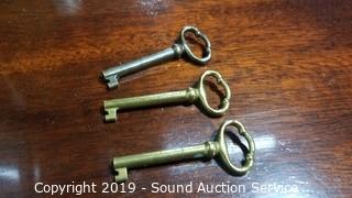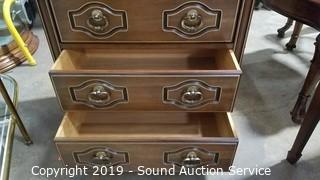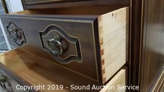 Item Description: In excellent condition. Dovetail construction, skeleton key locks with keys. Gold pinstripe trim. 73" H x 27" W x 16" D.