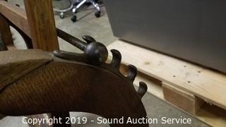 Various Furniture, Mid-Century Broyhill Lighted Butler's Pantry, Antique Steamer Trunks, Primitive Wood Crossbow, Belvedere Adjustable MCM Barber/Styling Chair, Vtg. Karastan Area Rugs, 94pc Gold Coast "White Dahlia" Fine China Dish Set, XBox 360's Consoles & Games, Wii Game Console & Games, Fostoria American Block Clear Glassware, Antique 1880s King James Holy Bible, Various Literature, Vtg. Bone & Bamboo Mahjong Set, Samsung Soundbar w/Wireless Subwoofer, Vtg. Philip Harris LTD Balance Scale, Woven Native Baskets, Art Pottery, Nice 4pc Set of Vtg. Leather Hartmann Luggage, Service for 12 Community Silverplate Flatware Set & So Much More!!!