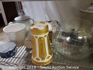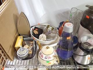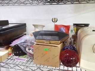 Various Furniture, Mid-Century Broyhill Lighted Butler's Pantry, Antique Steamer Trunks, Primitive Wood Crossbow, Belvedere Adjustable MCM Barber/Styling Chair, Vtg. Karastan Area Rugs, 94pc Gold Coast "White Dahlia" Fine China Dish Set, XBox 360's Consoles & Games, Wii Game Console & Games, Fostoria American Block Clear Glassware, Antique 1880s King James Holy Bible, Various Literature, Vtg. Bone & Bamboo Mahjong Set, Samsung Soundbar w/Wireless Subwoofer, Vtg. Philip Harris LTD Balance Scale, Woven Native Baskets, Art Pottery, Nice 4pc Set of Vtg. Leather Hartmann Luggage, Service for 12 Community Silverplate Flatware Set & So Much More!!!