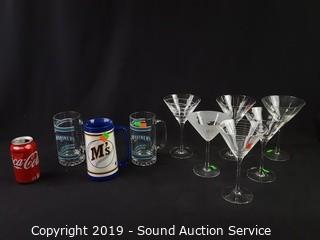 Lot #0119: Mariner's Beer Mugs & 6 Martini Glasses