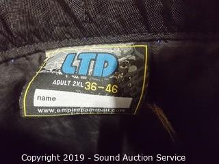 Item Description: Includes LTD 36-46 XXL pants (dirty) and Adult Aftershock chest plate.