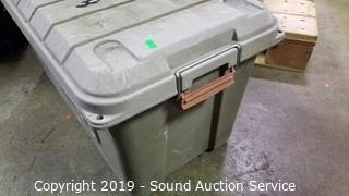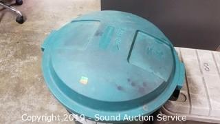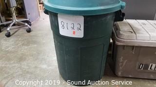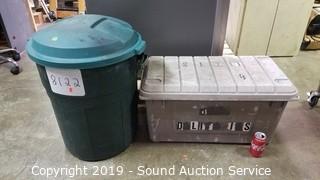 Lot #0217: Rubbermaid 20Gal Trash Can w/Lid & Tote
