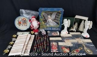 Item Description: Includes House of Lloyd porcelain angel figures, Dept. 56 Snowbabies, 1976 Collector's Edition Angel topper, 10 clip on candle holders, Santa figure and more.