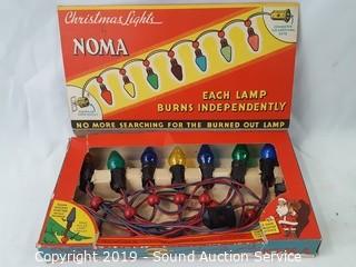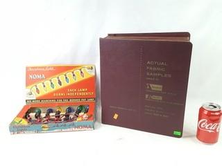 Item Description: 1956 Fall and Winter actual fabric sample catalog from Sears and 1939 Christmas lights by Noma (work, come in original box).