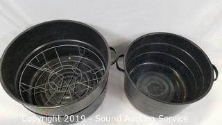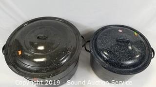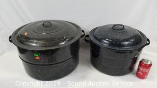 Lot #0398: 2 Lg. Enamelware Canning / Boiling Pots w/Lids