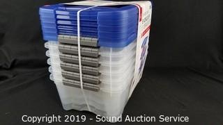 Lot #0117: (6) 12.9qt Clear Stackable Totes w/Lids