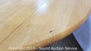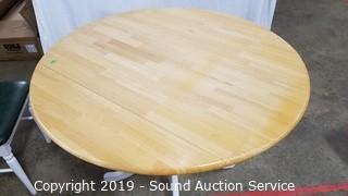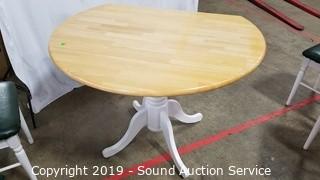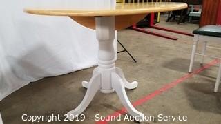Item Description: Table is drop leaf. All in great condition, very minor wear. 30" H x 40" Dia with two 8" leaves. Made in Malaysia.
