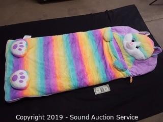 Lot #0331: Child's Hug Fun Rainbow Bear Plush Sleeping Bag