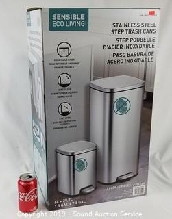 Lot #0110: New 2 Stainless Steel Step Trash Cans