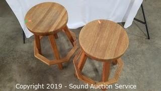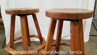 Lot #0007: Pair of Oak Swivel Stools