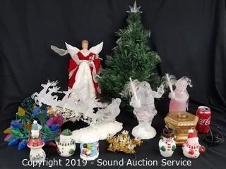 Item Description: Lighted Tree, Reindeer, String Lights, Angel Topper and more.