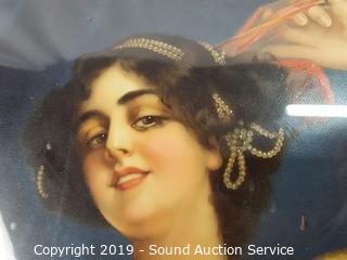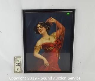Lot #0419: Vtg. Beautiful Lady w/Pearls & Red Dress Litho