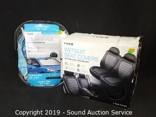 Lot #0338: Wetsuit Vehicle Seat Covers & 3pc Solar Shade Set