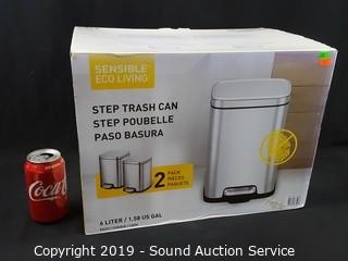 Lot #0232: 2 New 1.58Gal Stainless Steel Step Trash Cans