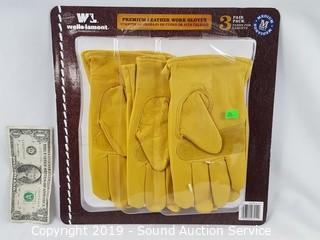 Lot #0235: 3pk Wells Lamont Leather Work Gloves S:Medium
