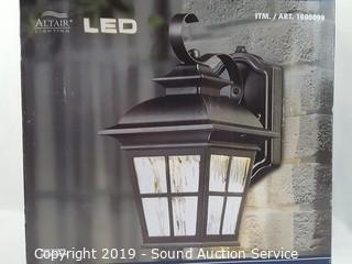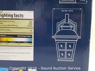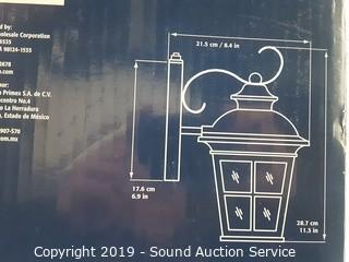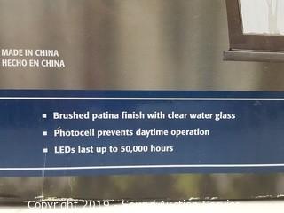 Item Description: Brushed patina finish with clear water glass. 9W, 506L, 3000K color. 11.3" T x 6,5" W x 8.4" E. Works.