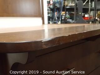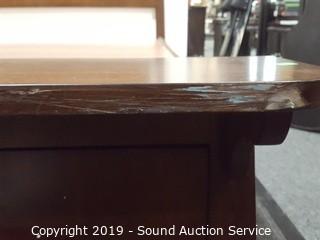Item Description: Does have a scuff on one corner of the footboard, otherwise in excellent, like new condition. Part of 6-piece set from Costco $4,999 retail. Integrated Bench in Footboard