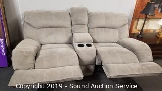 Lot #0010a: Dual Reclining Microfiber Fabric Sofa