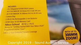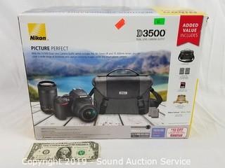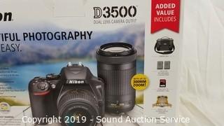 Lot #0083: New Nikon D3500 Duel Lens Camera Outfit