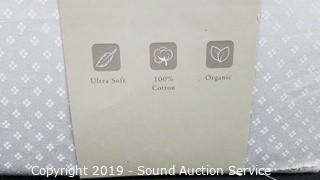 Item Description: 100% organic cotton. 1 flat, 1 fitted and 4 pillow cases.