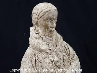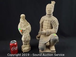 Item Description: The head is removable from the large warrior, 19" tall. Also comes with other Chinese figure sculpture, made from a type of concrete, plaster material, 14" tall.