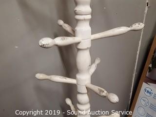 Lot #0361: Shabby Chic White Wood Hall Tree Coat Rack