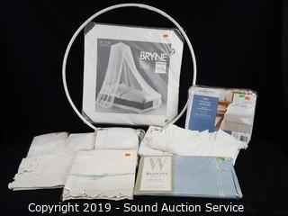 Lot #0160: 2 King 2pc Sheet Sets, Linens, & New Mosquito Net