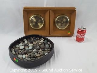Lot #0102: Accent Bowl w/Rocks & Springfield Weather Station