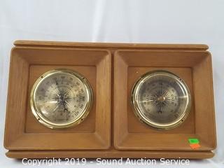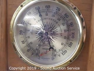 Item Description: The Springfield is framed in wood, thermometer, hygrometer, barometer, 10" x 17". Accent bowl is signed pottery 2" x 12".