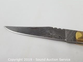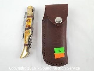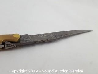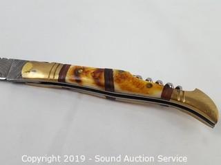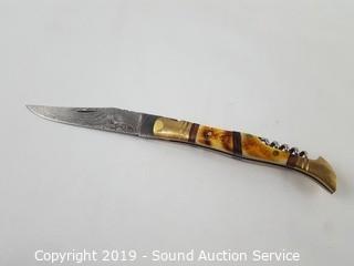Lot #0003: Beautiful Damascus Blade Folding Knife w/Corkscrew