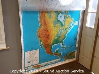 Lot #0385: North America Map & World/US/Alaska Tri-Fold Map