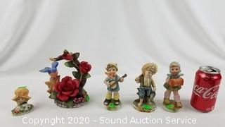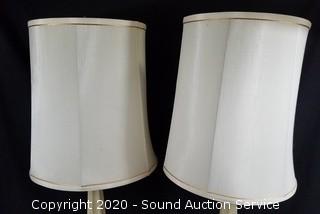 Lot #0087: 2 Tall Column Table Lamps & 5 Porcelain Figures