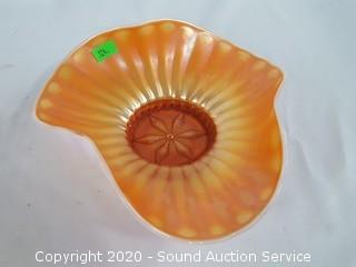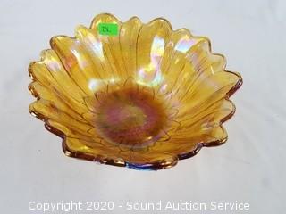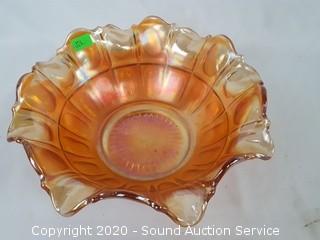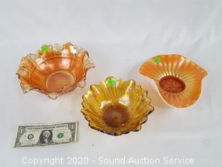 Lot #0124: 3pc Marigold Carnival Glass Ruffled Edge Bowls