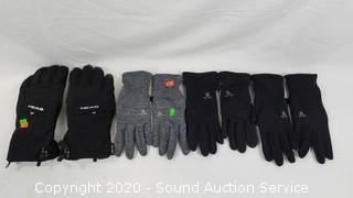 Item Description: Includes women's medium and large running gloves and men's XS cold weather gloves. One pair is lightly used, others are like new.
