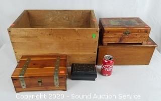 Lot #0292: 4 Trinket Boxes & Vtg. Crate