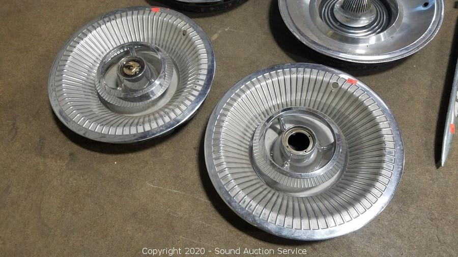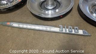 Lot #0257: 6 Vtg. Hubcaps & Chevrolet 3100 Emblem