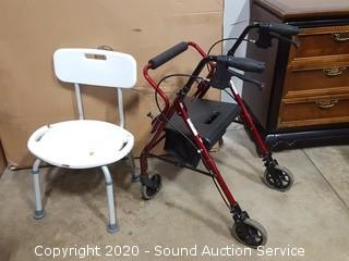 Lot #0024: Nova Red Rolling Walker & Medical Chair
