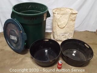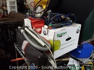 Description Cont. 1: Pellet Water Softener, 32Gal Rubbermaid Trash Can & Bins, Lacrosse & Baseball Equipment, White Wire Shelf, Water Carrier, Lunch Box & Thermoses, Lot of Various Light Bulbs, Various Halloween Decor, Rejuvenation 29"