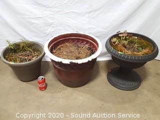 Item Description: 3 Lg. Plastic Planters w/Soil, Hoover Elite II Dual Purpose Vacuum w/Headlight, Pair of Tire Chains, Wagner Wide Shot Power Painter, Hydraulic Floor Jack, 40lbs Bag of Salt