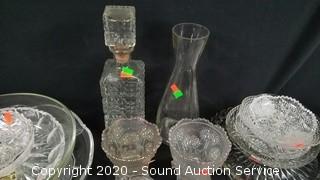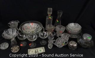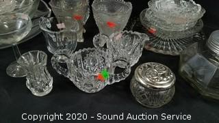 Item Description: Includes flower frog, decanter, cream and sugars, various dishes and more.