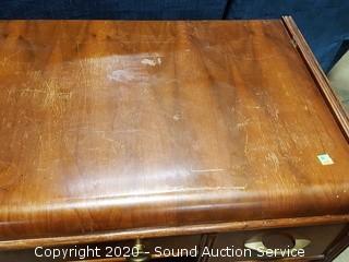 Item Description: Some wear to the finish, in overall condition. Dovetail joinery. 30" H x 42" W x 20" D.