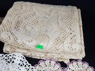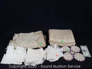 Lot #0188: Vtg. Crocheted Table Cloths & Doilies