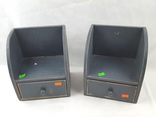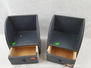 Item Description: Largest shelf is 7" x 23" x 5", smaller shelves are 8.5" x 7" x 5.5" with drawer.