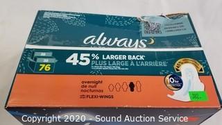 Lot #0182: 76pk Always Ultra Thin Overnight Pads