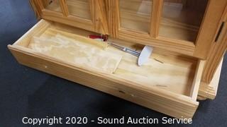 Item Description: Adjustable shelf with spare shelf pegs, drawer & door pulls are not attached, solid wood. Comes with owners manual. 75.5" H x 42" W x 15.5" D.