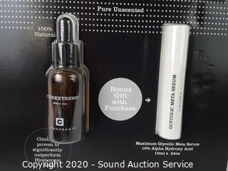 Item Description: 1 oz bottle of Hydrextreme, also comes with bonus 10mL Glycolic meta serum. Factory sealed package.