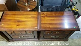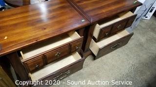Lot #0006: 2 Dark Stained Knotty Pine 2-Drawer Night Stands
