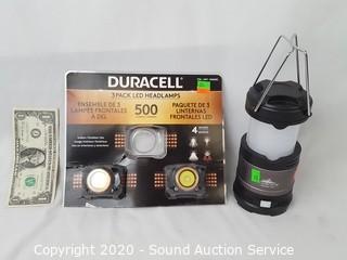 Lot #0126: 2 Duracell Headlamps & Collapsible LED Lantern