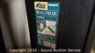 Lot #0370: 2 New Blue Hawk 32Gal Trash Cans w/Lids