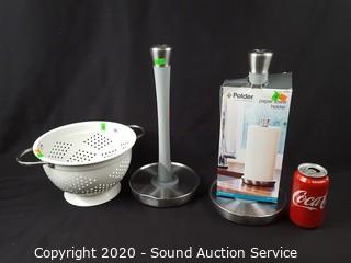 Lot #0026: 2 Polder Paper Towel Holders & Enamelware Colander
